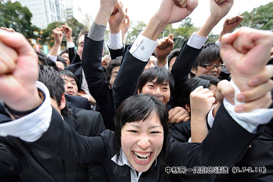2月10日,日本東京職業(yè)學(xué)校的學(xué)生在求職動(dòng)員會(huì)上伸出拳頭展現(xiàn)信心。日本的失業(yè)率達(dá)5%,2011屆畢業(yè)生將面臨嚴(yán)峻就業(yè)形式。圖片來(lái)源:中國(guó)新聞網(wǎng)>>點(diǎn)擊觀看詳細(xì)內(nèi)容
