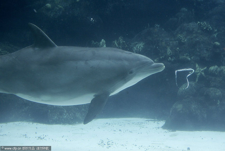 近日,美國(guó)奧蘭多海洋世界的一只寬吻海豚吹出“心形”氣泡,似乎要在情人節(jié)來臨前夕傳達(dá)濃濃愛意。圖片來源:CFP