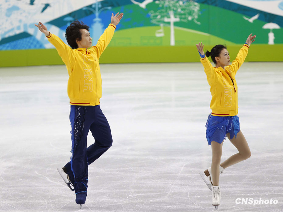 當(dāng)?shù)貢r(shí)間2月13日,中國(guó)花樣滑冰隊(duì)龐清/佟健、張丹/張昊在溫哥華太平洋體育館,利用最后的休息時(shí)間重復(fù)練習(xí)積極備戰(zhàn)即將到來(lái)的比賽。中新社記者 盛佳鵬 攝