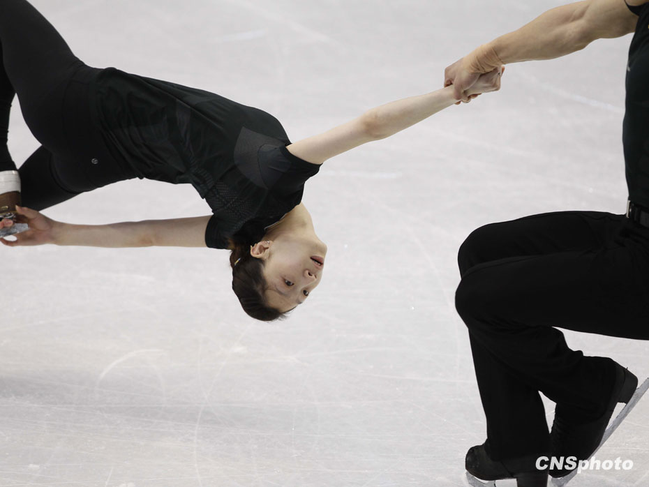 當?shù)貢r間2月13日,中國花樣滑冰隊龐清/佟健、張丹/張昊在溫哥華太平洋體育館,利用最后的休息時間重復練習積極備戰(zhàn)即將到來的比賽。中新社記者 盛佳鵬 攝