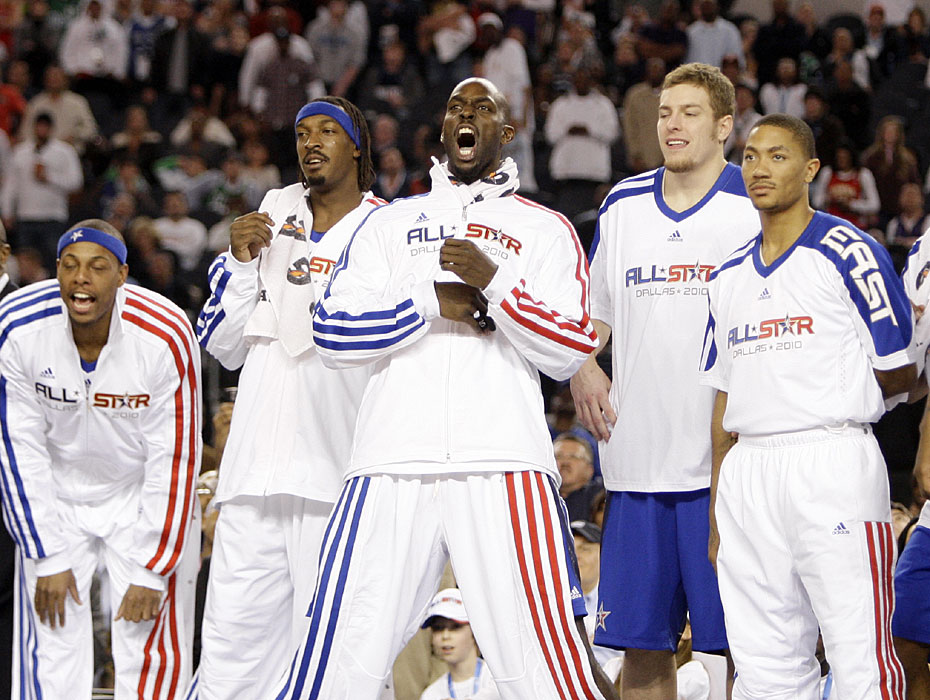 美國當(dāng)?shù)貢r間2月14日,2010NBA全明星周末,東部明星隊(duì)以141比139險勝西部明星隊(duì)。整場比賽猶如度假一般全無緊張氣氛。圖片來源:中國新聞網(wǎng)