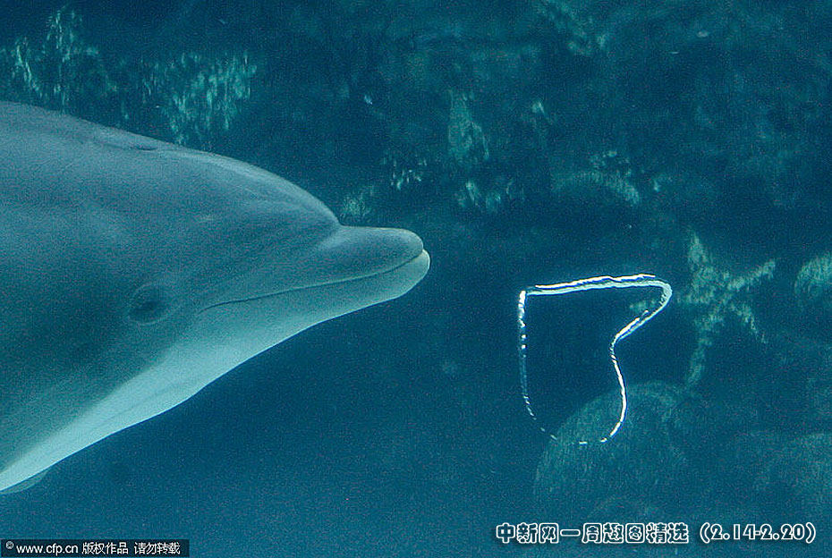 近日,美國奧蘭多海洋世界的一只寬吻海豚吹出“心形”氣泡,似乎要在情人節(jié)來臨前夕傳達(dá)濃濃愛意。圖片來源:CFP>>點(diǎn)擊觀看詳細(xì)內(nèi)容