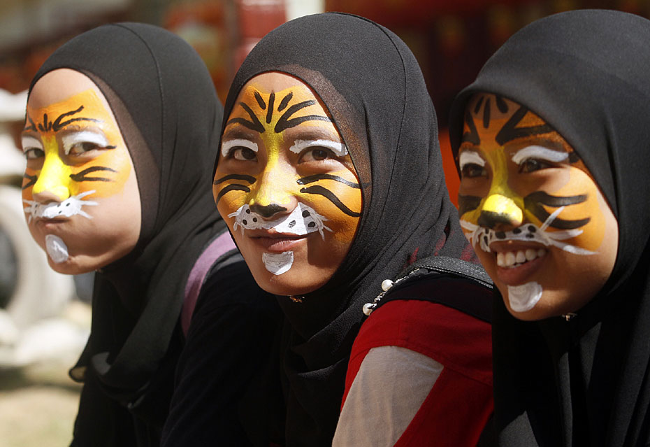 2月20日,馬來西亞民眾圍聚在首都吉隆坡附近的佛光山東禪寺,紛紛將自己繪成老虎的樣子,呼吁大家保護(hù)野生虎。圖片來源:中國新聞網(wǎng)