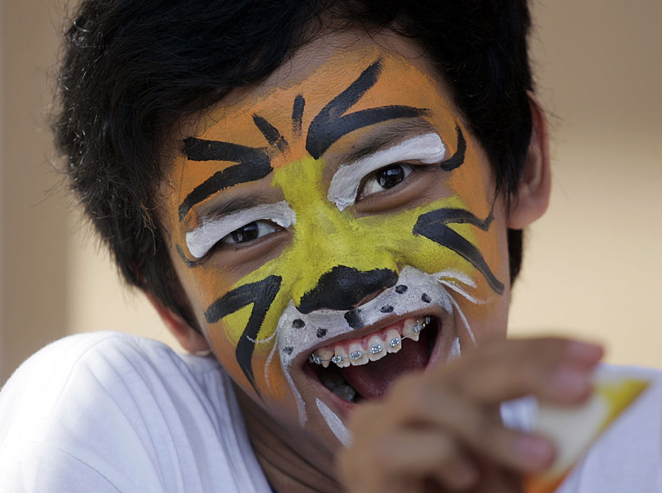 馬來西亞民眾繪虎面呼吁保護(hù)野生虎