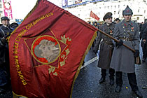 2月23日,俄羅斯莫斯科,示威者參加俄羅斯共產黨組織的集會,抗議軍隊改革。圖片來源:中國新聞網