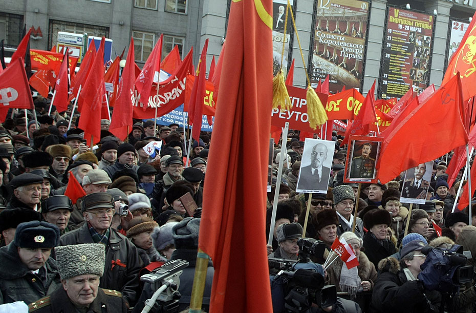 2月23日,俄羅斯莫斯科,示威者參加俄羅斯共產(chǎn)黨組織的集會,抗議軍隊改革。圖片來源:中國新聞網(wǎng)
