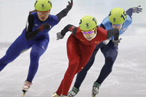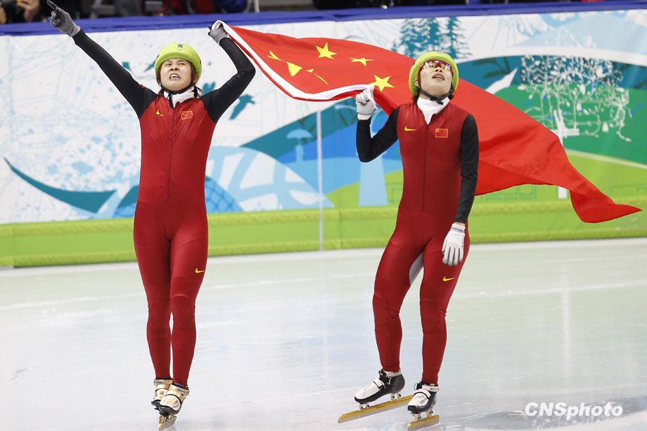 北京時(shí)間27日中午,中國選手王濛在2010年溫哥華冬奧會(huì)短道速滑女子1000米的決賽中摘得金牌。圖片來源:中國新聞網(wǎng)