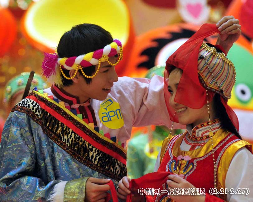 為迎接元宵節(jié),香港創(chuàng)紀之城將舉行三大特色少數(shù)民族婚禮,包括最多人口的壯族、好客的苗族和能歌善舞的蒙古族。25日,商場預(yù)演蒙古族新郎迎接新娘片段。圖片來源:中國新聞網(wǎng)>>點擊觀看詳細內(nèi)容