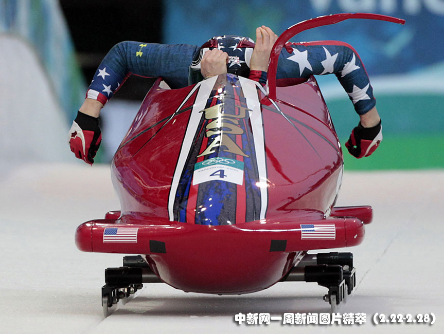 24日(周三),美國選手Shauna Rohbock和Michelle Rzepka在參加溫哥華冬奧會(huì)的有舵雪橇比賽。