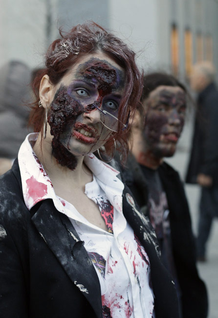 當(dāng)?shù)貢r(shí)間2月27日,在西班牙馬德里,眾多愛好者裝扮成“僵尸”的模樣,在街頭舉行巡游活動。