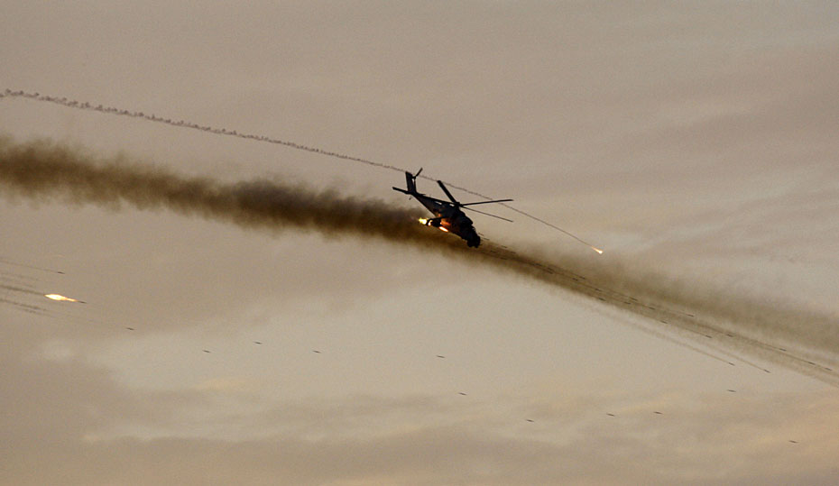 2月28日,印度空軍在該國(guó)西部地區(qū)舉行大規(guī)?罩谢鹆φ故狙萘(xí),出動(dòng)了包括“費(fèi)爾康”空中預(yù)警機(jī)、蘇-30戰(zhàn)斗機(jī)、米格-29戰(zhàn)斗機(jī)、幻影-2000戰(zhàn)斗機(jī)、伊爾-76運(yùn)輸機(jī)和米-35武裝直升機(jī)等約百架戰(zhàn)機(jī)。圖片來源:中國(guó)新聞網(wǎng)