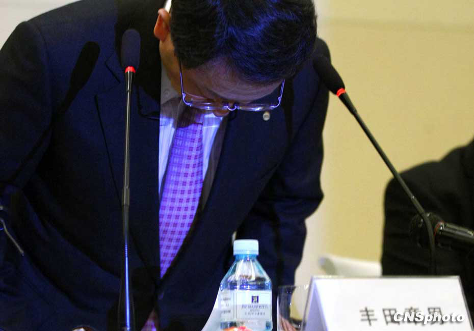3月1日,豐田汽車(chē)總裁豐田章男今日在北京舉行記者會(huì),介紹了豐田汽車(chē)大規(guī)模召回的原因及處理措施,并向中國(guó)消費(fèi)者鞠躬道歉。