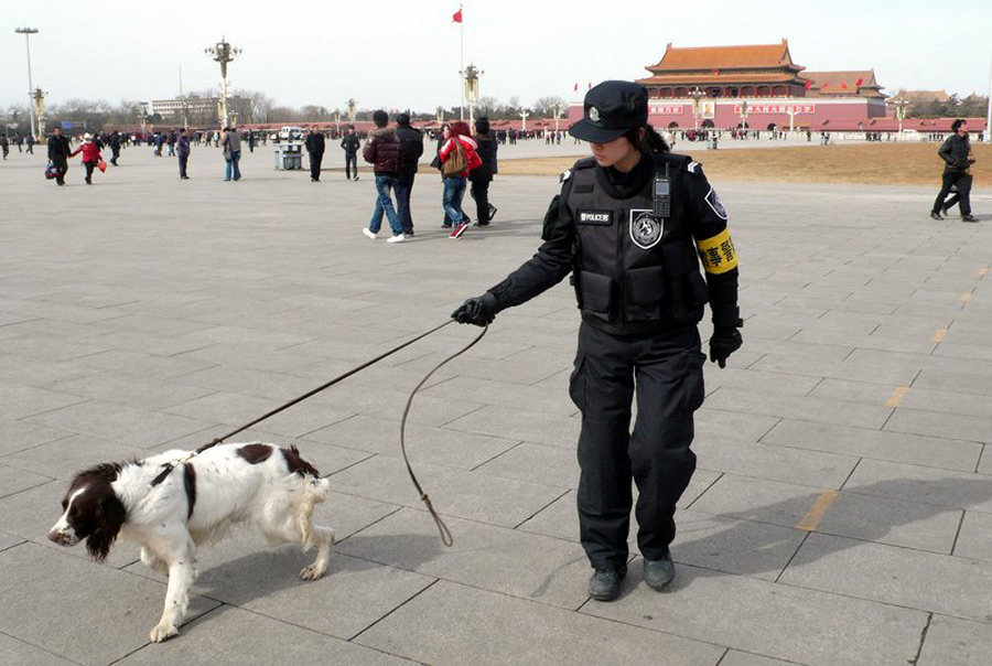 為確保兩會的順利召開,北京市啟動了一級安保護駕"兩會",同時動員組織了治安巡邏隊、治安志愿者、單位內部保衛(wèi)人員、社區(qū)保安等群防群治力量70萬人,形成專群結合、組織嚴密的防控網(wǎng)絡。天安門附近是兩會安保的重點區(qū)域。charlie 攝