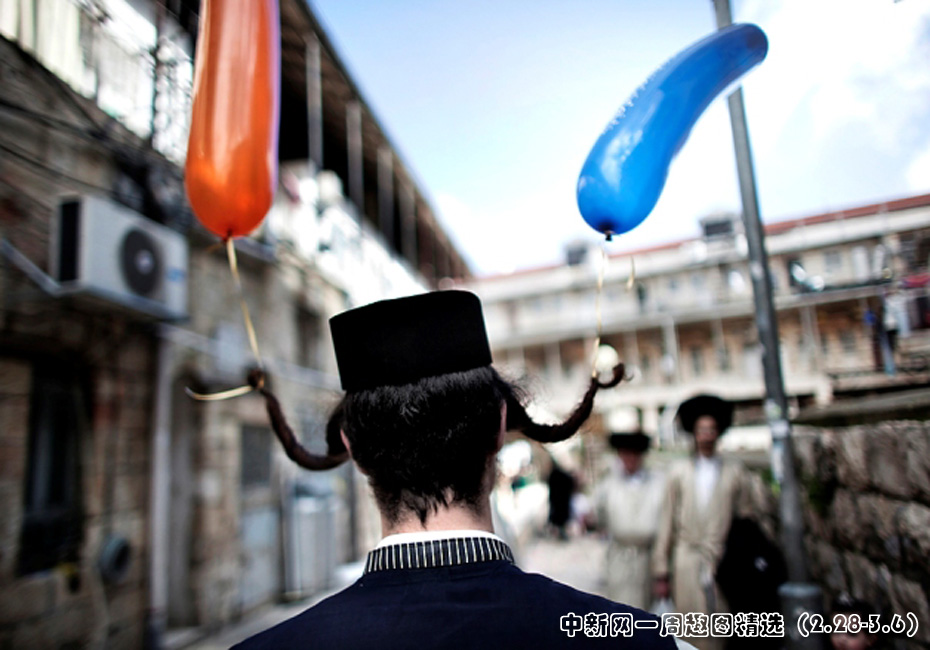 3月1日,耶路撒冷一名正統(tǒng)猶太教男子將氣球綁在他的頭發(fā)上慶祝普林節(jié)(Purim)的到來。這一節(jié)日是用來紀念猶太人從古波斯人的統(tǒng)治下獲得解放。圖片來源:中國新聞網(wǎng)>>點擊觀看詳細內(nèi)容