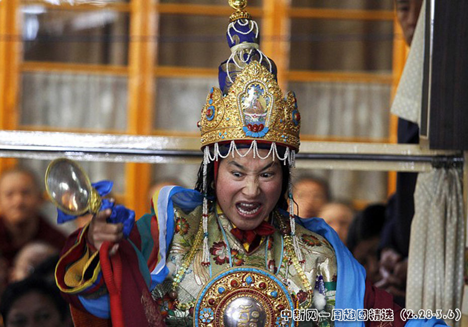 3月2日,在印度達(dá)蘭薩拉,西藏神使慈仁敬安正在進(jìn)行降神儀式。圖片來源:中國(guó)新聞網(wǎng)>>點(diǎn)擊觀看詳細(xì)內(nèi)容
