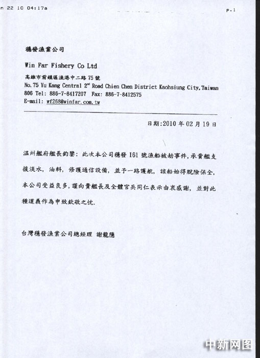 09年4月在西印度洋遭索馬里海盜挾持的臺(tái)灣遠(yuǎn)洋漁船“穩(wěn)發(fā)161號(hào)”,歷經(jīng)各方營(yíng)救,終于在遭挾持10個(gè)多月后,包括船長(zhǎng)顏勝男等共28人返回高雄港。圖片來(lái)源:中國(guó)新聞網(wǎng)