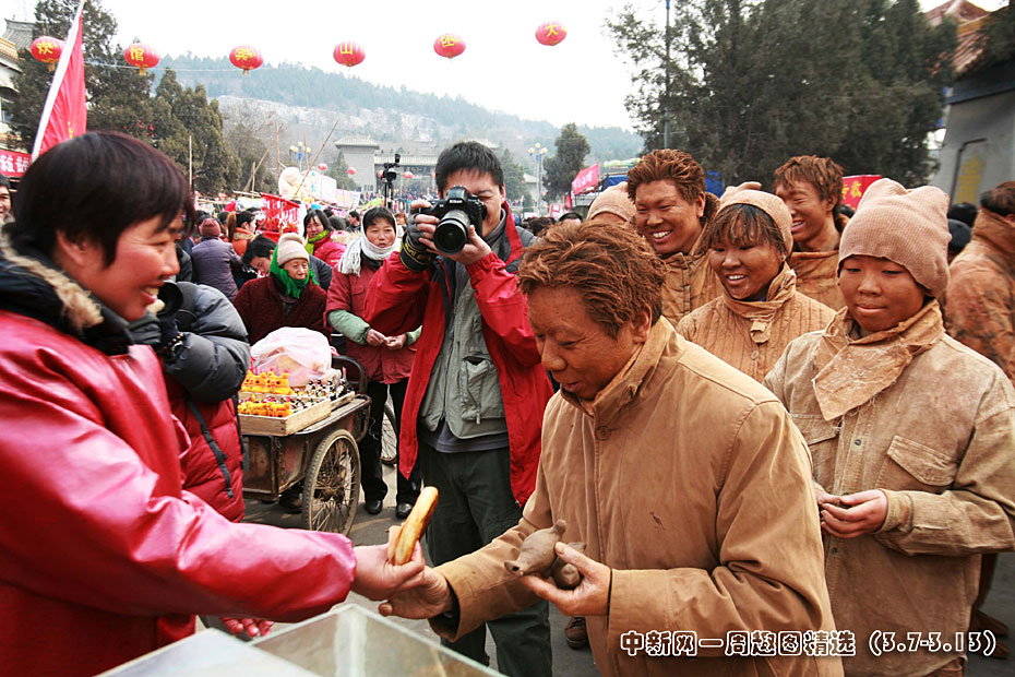 3月7日,一群“泥人”在河南浚縣廟會上自制泥玩具并將與現(xiàn)場商販交換商品。這次“大地上的人”藝術(shù)活動是“王剛——老萬系列作品”的第五次行為藝術(shù)活動!袄先f”代表“千千萬萬”。本次活動的主題從關(guān)注農(nóng)民工擴展到了關(guān)注人類的生存與發(fā)展。圖片來源:中國新聞網(wǎng)>>點擊觀看詳細內(nèi)容