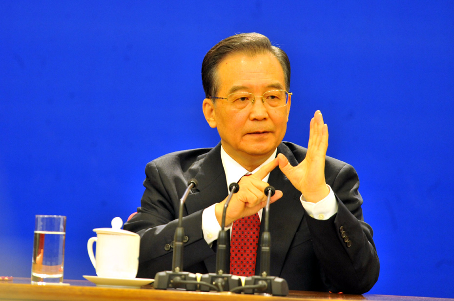 3月14日上午,國(guó)務(wù)院總理溫家寶在人民大會(huì)堂三樓金色大廳與采訪十一屆全國(guó)人大三次會(huì)議的中外記者見面并回答記者提出的問(wèn)題。中新社記者 賈國(guó)榮 攝 圖片來(lái)源:中國(guó)新聞網(wǎng)