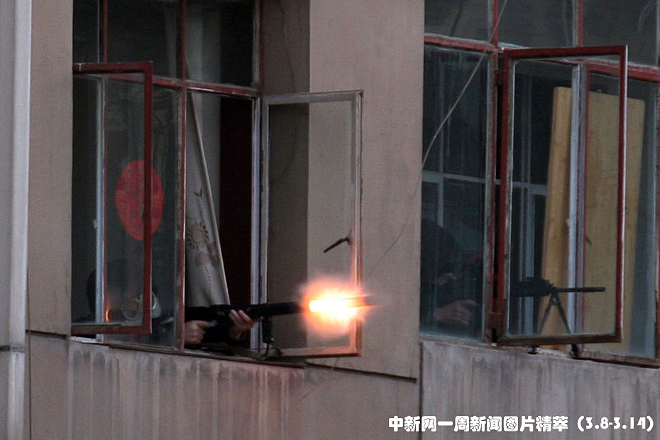 周四,甘肅蘭州,警方向槍殺特警嫌犯的藏匿點開火。當天,轟動全國的蘭州槍擊案嫌犯付曉霖被警方發(fā)現(xiàn),嫌犯躲進一居民樓內(nèi)。雙方對峙長達11個小時,期間人質被解救,最終特警破門進入嫌犯所在屋內(nèi)將其擊斃。圖片來源:中國新聞網(wǎng)