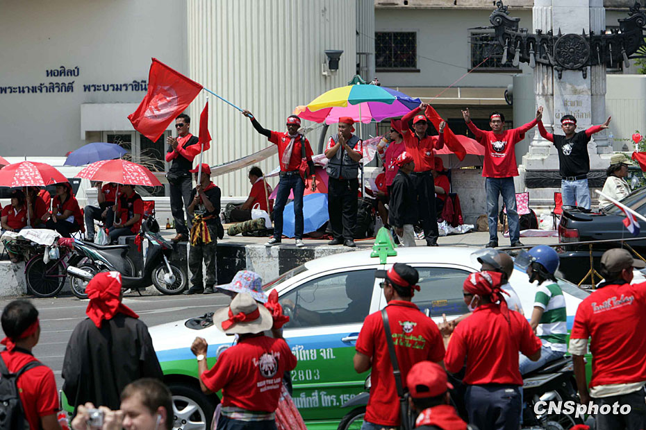3月13日起,泰國(guó)“紅衫軍”陸續(xù)從泰國(guó)北部、東北部等外府進(jìn)入曼谷市,在集會(huì)主會(huì)場(chǎng)搭設(shè)演講舞臺(tái)和帳篷,拉開(kāi)大規(guī)模示威序幕。圖片來(lái)源:中國(guó)新聞網(wǎng)