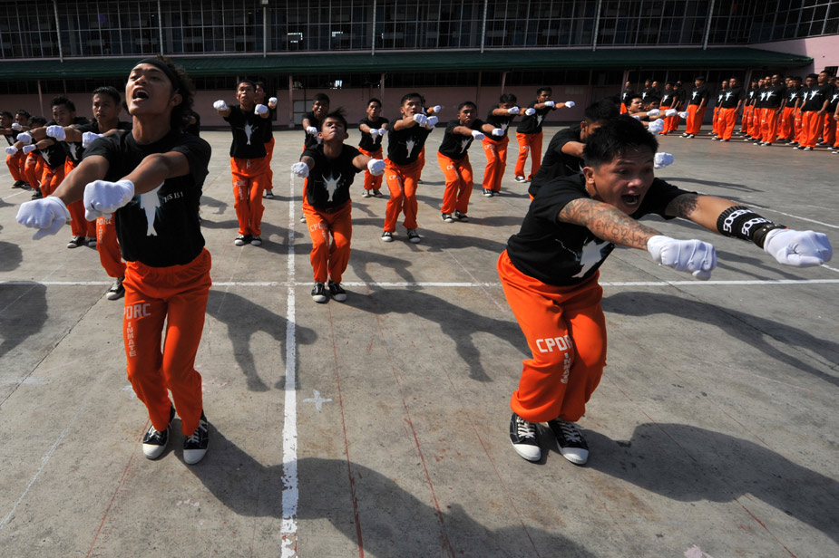近日,在菲律賓超過1500名囚犯在監(jiān)獄中集體學(xué)習(xí)已故歌壇巨星杰克遜的舞蹈,以此來激起他們生活的斗志。圖片來源:中國新聞網(wǎng)
