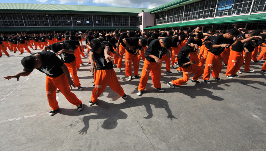 近日,在菲律賓超過1500名囚犯在監(jiān)獄中集體學習已故歌壇巨星杰克遜的舞蹈,以此來激起他們生活的斗志。圖片來源:中國新聞網(wǎng)
