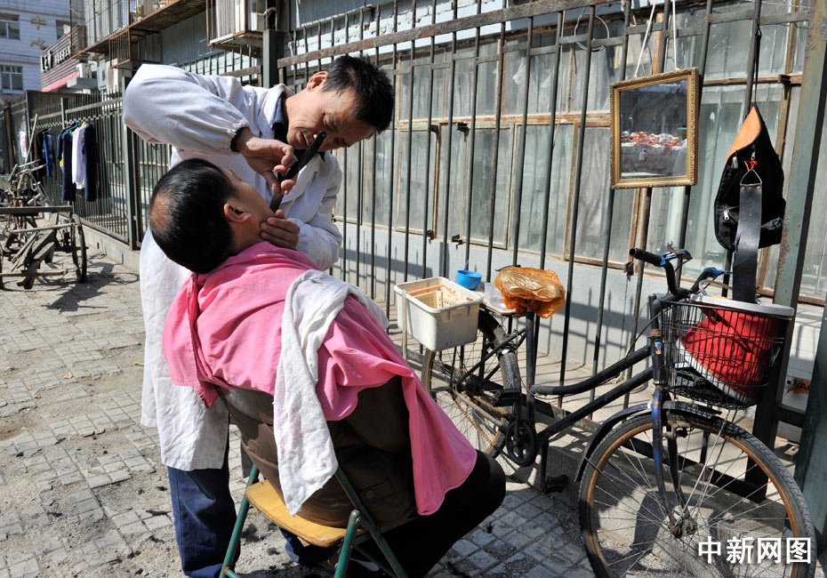 3月17日,北京市民在街頭理發(fā)。中新網(wǎng)記者 金碩 攝