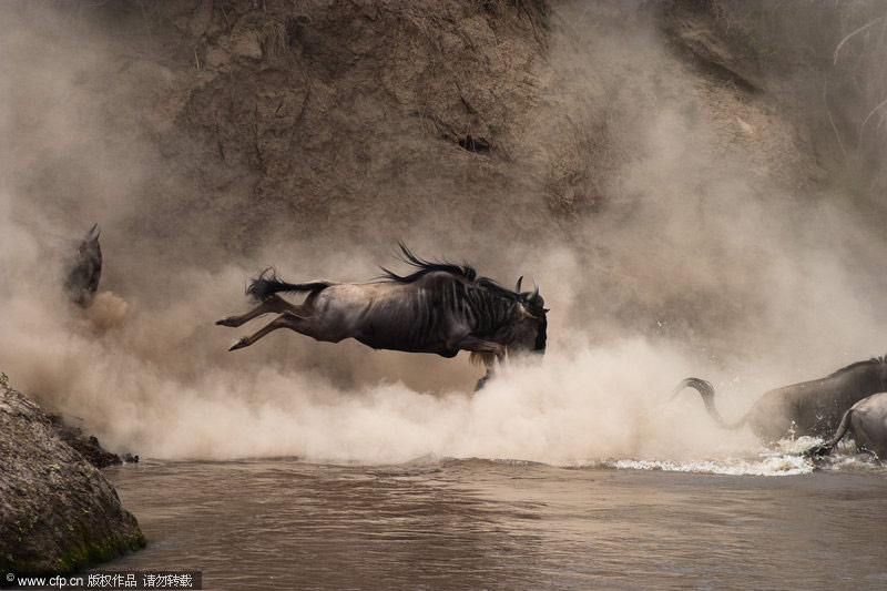 3月17日消息,捷克野生動(dòng)物攝影師瓦拉夫·希爾哈(Vaclav Silha)在肯尼亞馬賽瑪拉(Masai Mara)國(guó)家保護(hù)區(qū)拍到了罕見的牛羚大遷移場(chǎng)面。上百萬(wàn)牛羚集體穿越馬拉河,同時(shí)為了防止被水中的鱷魚咬到及逃避岸邊叢林里的老虎,牛羚群制造出巨大的聲響并急沖到對(duì)岸。barcroftmedia/CFP