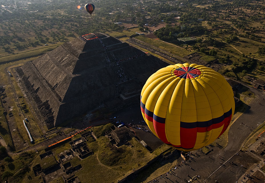 當(dāng)?shù)貢r間3月21日,熱氣球從墨西哥特奧蒂瓦坎上空飛過。墨西哥近日在特奧蒂瓦坎附近舉行熱氣球節(jié)迎接春分的到來。圖片來源:中國新聞網(wǎng)