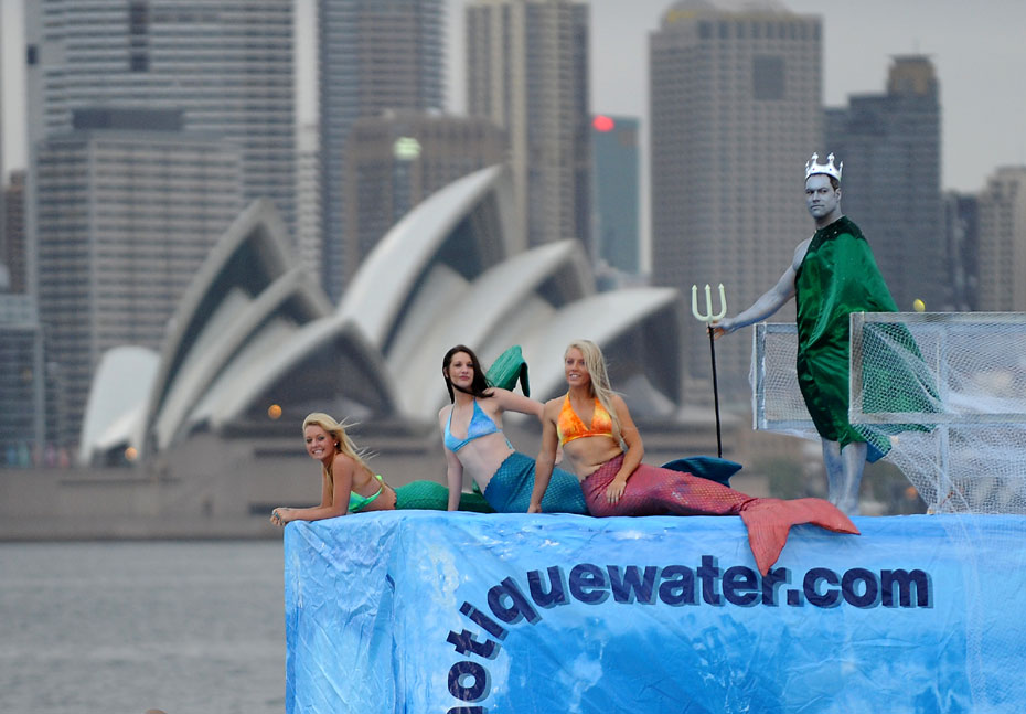 2010年3月22日,是第18個“世界水日”,今年聯(lián)合國將“世界水日”的主題定為:保障清潔水源,創(chuàng)造健康世界,意在強調(diào)水資源的數(shù)量和質(zhì)量都面臨著威脅。本周也是第23個“中國水周”,宣傳主題是“嚴格水資源管理,保障可持續(xù)發(fā)展”。目前,中國西南5省區(qū)正在遭遇一場百年難遇的大旱,而與此同時,16個省份約2.7億人遭受沙塵侵擾。因此,這個世界水日的到來更加引發(fā)人們對水資源及節(jié)水話題的凝重思考和深度追問。圖為3月22日,海洋生物學家打扮成美人魚和海神模樣坐在6米長的“冰山”號船上經(jīng)過澳大利亞悉尼港口大橋附近水面,以紀念世界水日。