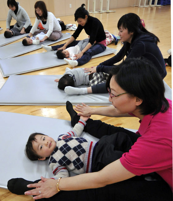 3月24日,在日本橫濱市的一堂母嬰桑巴課上,媽媽們帶著自己的寶寶一起參加舞蹈訓練。 凡是孩子年齡在三個月到兩歲之間的母親都可以到這里參加母嬰舞蹈課,課程包括桑巴、華爾茲、布魯斯等。