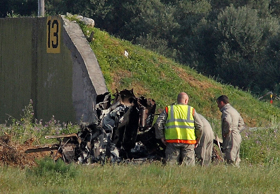 3月23日,英國“紅箭”特技飛行隊的兩架飛機(jī)在希臘克里特島進(jìn)行訓(xùn)練時不慎相撞,所幸駕駛飛機(jī)的兩名飛行員成功跳傘,僅受輕傷。圖片來源:中國新聞網(wǎng)