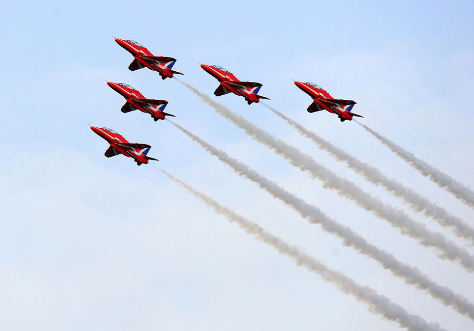 圖為英國“紅箭”特技飛行隊(duì)訓(xùn)練的資料圖片。