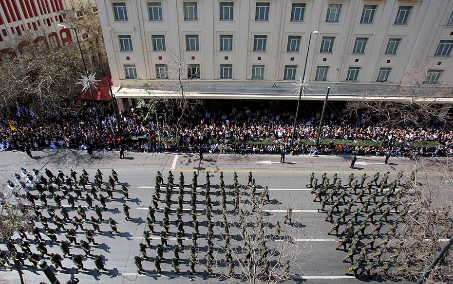 3月25日,在希臘首都雅典的憲法廣場,人們參加獨立戰(zhàn)爭紀念日慶;顒印D片來源:中國新聞網(wǎng)