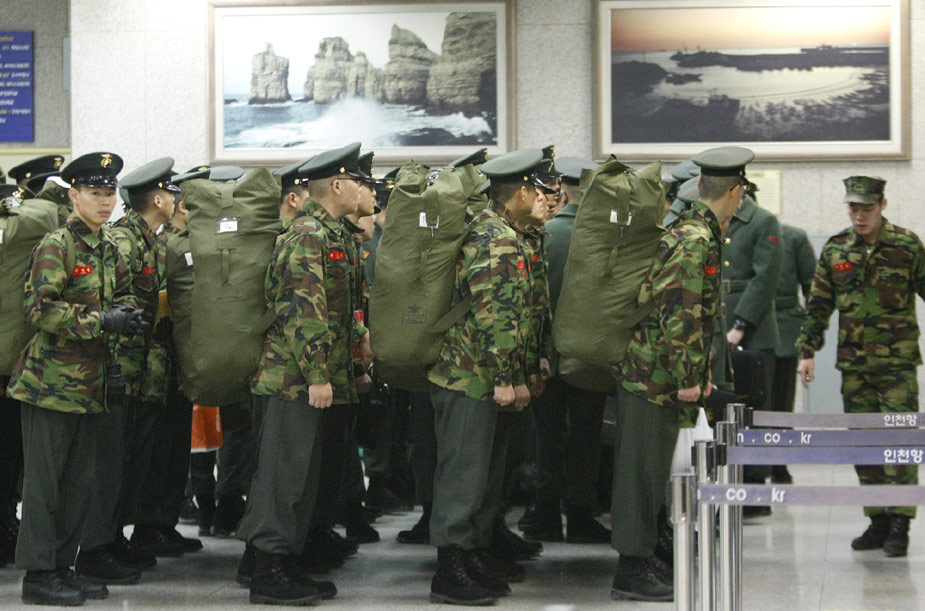 首爾當?shù)貢r間26日晚9點45分許,在韓國西部海域執(zhí)行警戒任務的天安艦(1200噸級)因不明原因事故,船底被炸開洞,船尾開始下沉。天安艦上共有104人,韓國巡邏艇和直升飛機迅速展開救援行動,事發(fā)5小時后,官員稱已救出58人,但因為強風和夜幕,救援行動進展緩慢,其它人員仍下落不明。圖為韓國海軍海上救援隊正在整裝準備出發(fā)。