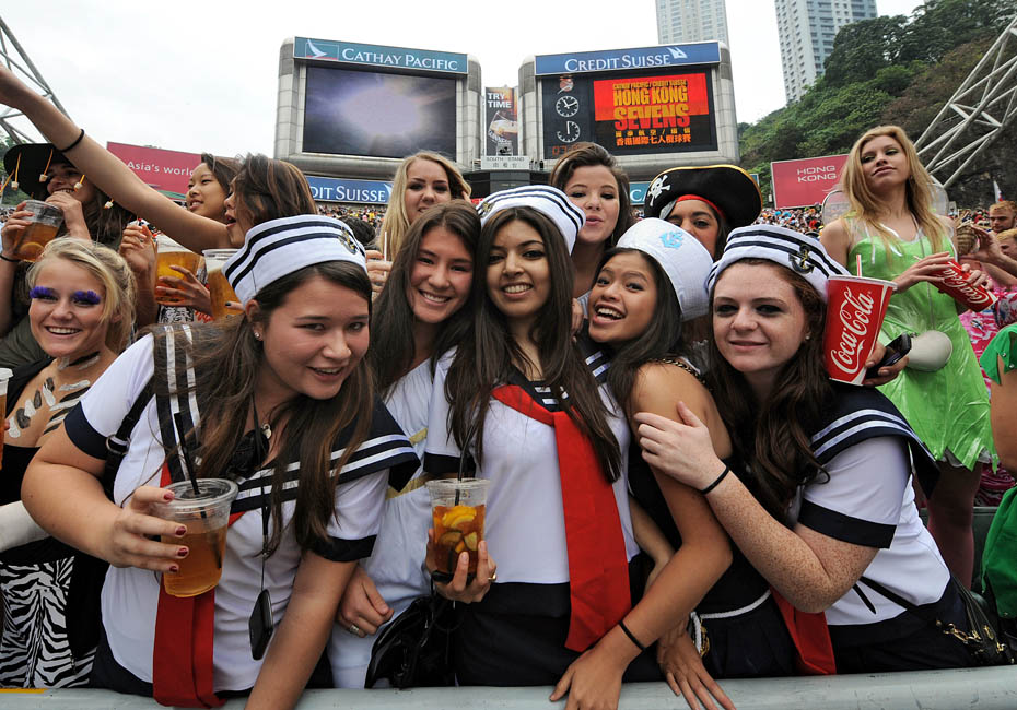 近日,“香港國(guó)際七人欖球賽”在大球場(chǎng)開鑼。來自世界各地的球迷盛裝捧場(chǎng),狂樂連場(chǎng)賽事。圖片來源:中國(guó)新聞網(wǎng)