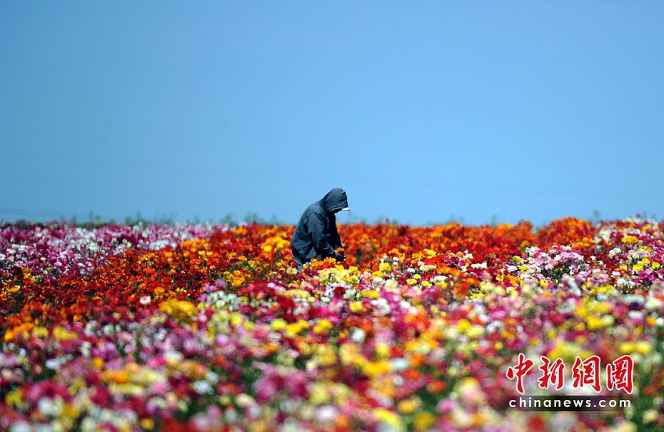 美國加利福尼亞州圣迭戈的卡爾斯巴德花田近日繁花盛開,姹紫嫣紅的花朵整齊地鋪滿在五十英畝的土地上,一望無垠的花海,美不勝收。圖片來源:中國新聞網(wǎng)