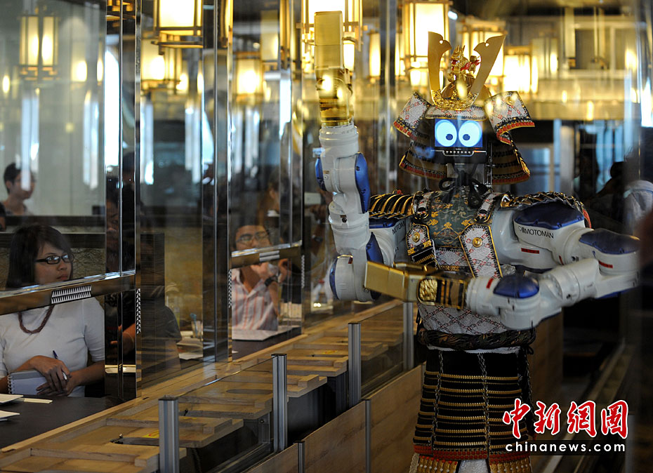 這家日本餐館是泰國首家擁有機(jī)器人服務(wù)員的餐館,顧客可以通過電子觸摸屏進(jìn)行點(diǎn)菜,機(jī)器人則會(huì)帶來相應(yīng)的服務(wù)。機(jī)器人服務(wù)員能有節(jié)奏地跳舞,還可以自動(dòng)到餐桌為客人收走空盤子。