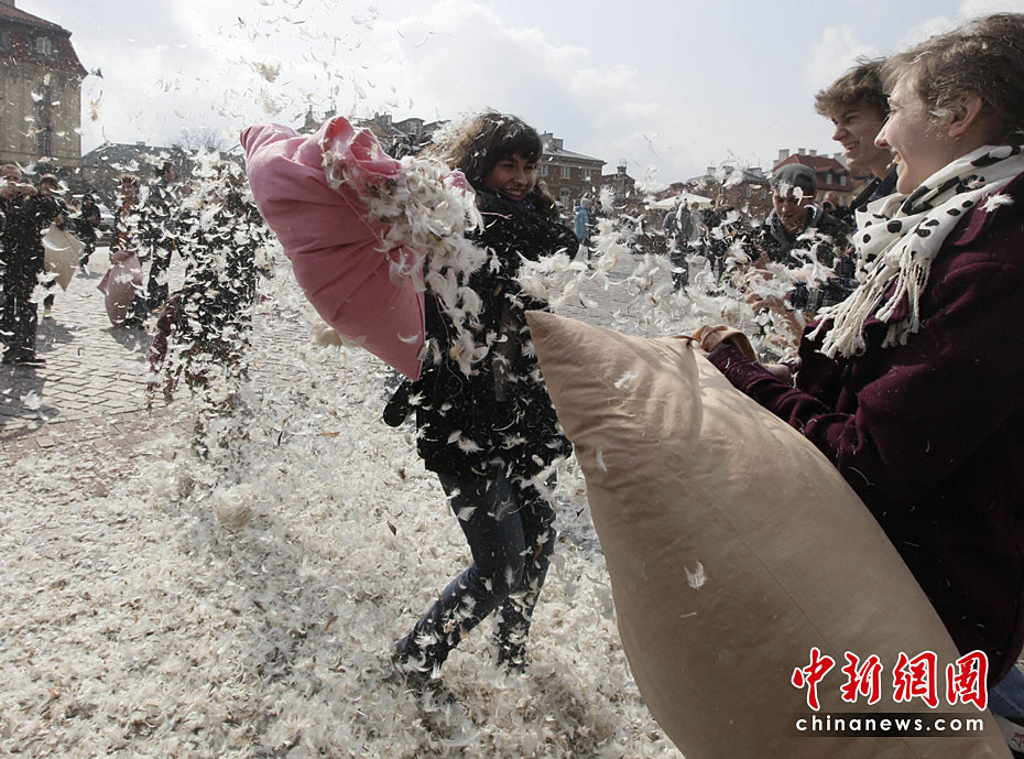 4月3日是國際“枕頭大戰(zhàn)”日。在這一天,多個國家的“枕頭大戰(zhàn)”愛好者相約走上街頭,用獨特的方式來慶祝他們的節(jié)日。圖片來源:中國新聞網(wǎng)