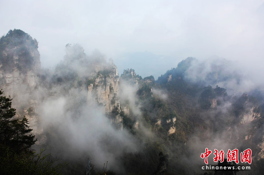 中新網(wǎng)張家界4月8日電(鄧道理 鄧霞)今晨,雨后初晴的湖南張家界天子山景區(qū)出現(xiàn)美麗壯觀的云海奇觀,風起云涌之時砂巖峰林若隱若現(xiàn)、似夢似幻,勝過《阿凡達》“懸浮山”仙境,令海內(nèi)外游客驚喜不已。
