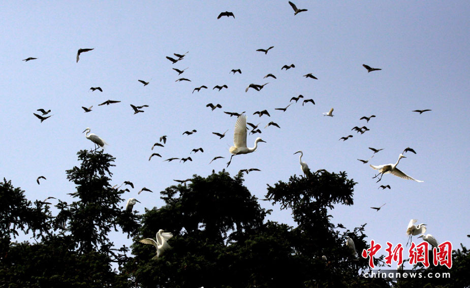 4月9日,一對(duì)白鷺在象山森林公園歡躍飛舞,譜寫一曲春日戀歌。四月,正值芳草萋萋,萬物生機(jī)勃勃。萬余只白鷺陸續(xù)抵達(dá)江西南昌象山森林公園棲息,繁衍后代,成為鄱陽湖濕地的一大獨(dú)特景觀, 吸引眾多攝影愛好者前來拍攝和觀賞。孫永勝 胡國林 攝