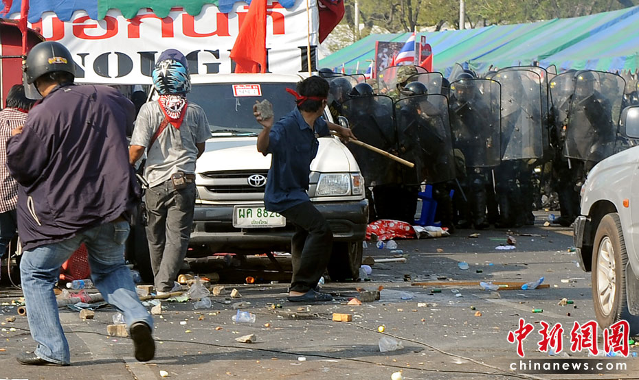 4月10日,泰國軍隊在首都曼谷對支持前總理他信的“紅衫軍”進(jìn)行武力驅(qū)散,雙方爆發(fā)嚴(yán)重沖突,目前已造成18人死亡,數(shù)百人受傷。圖片來源:中國新聞網(wǎng)