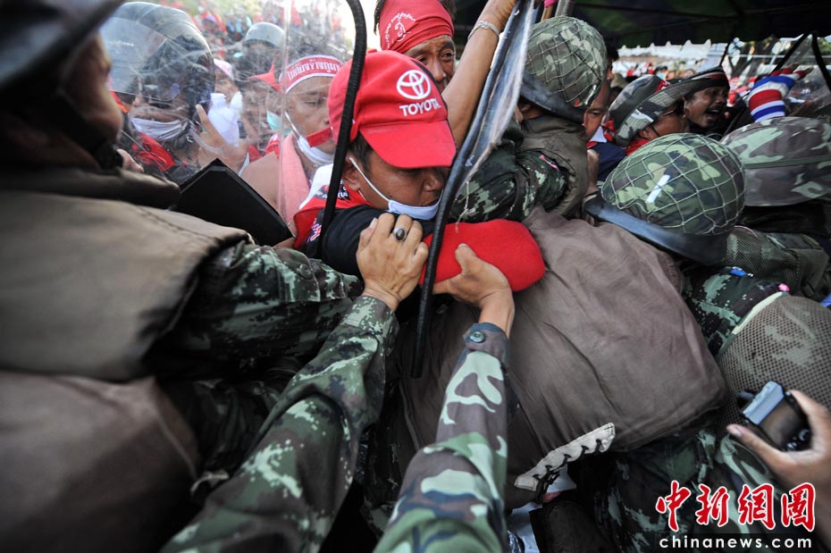 4月10日,泰國(guó)軍隊(duì)在首都曼谷對(duì)支持前總理他信的“紅衫軍”進(jìn)行武力驅(qū)散,雙方爆發(fā)嚴(yán)重沖突,目前已造成18人死亡,數(shù)百人受傷。圖片來(lái)源:中國(guó)新聞網(wǎng)