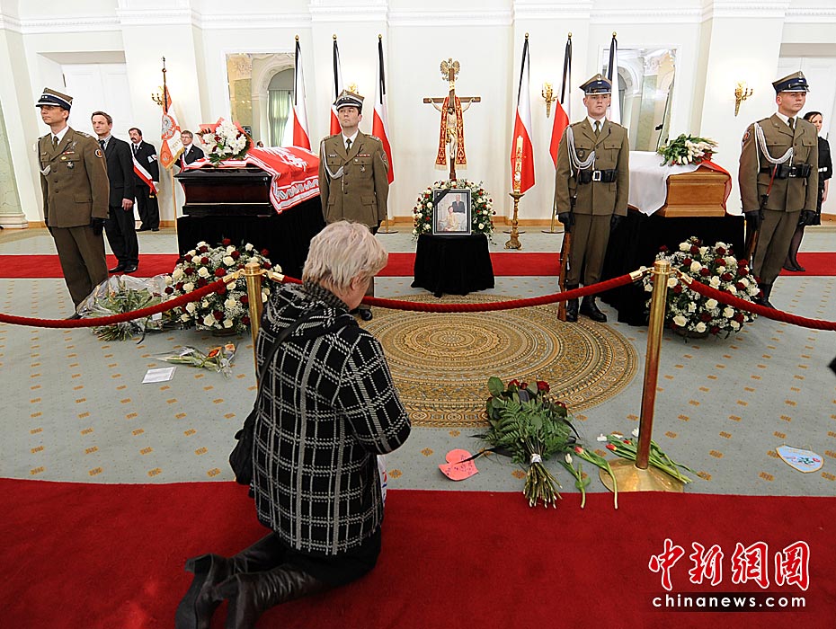 當(dāng)?shù)貢r(shí)間4月13日14時(shí),波蘭總統(tǒng)夫婦的遺體被安放在總統(tǒng)府最大的圓柱廳供民眾瞻仰和悼念?偨y(tǒng)卡欽斯基及其夫人的葬禮將于18日舉行。圖片來源:中國(guó)新聞網(wǎng)