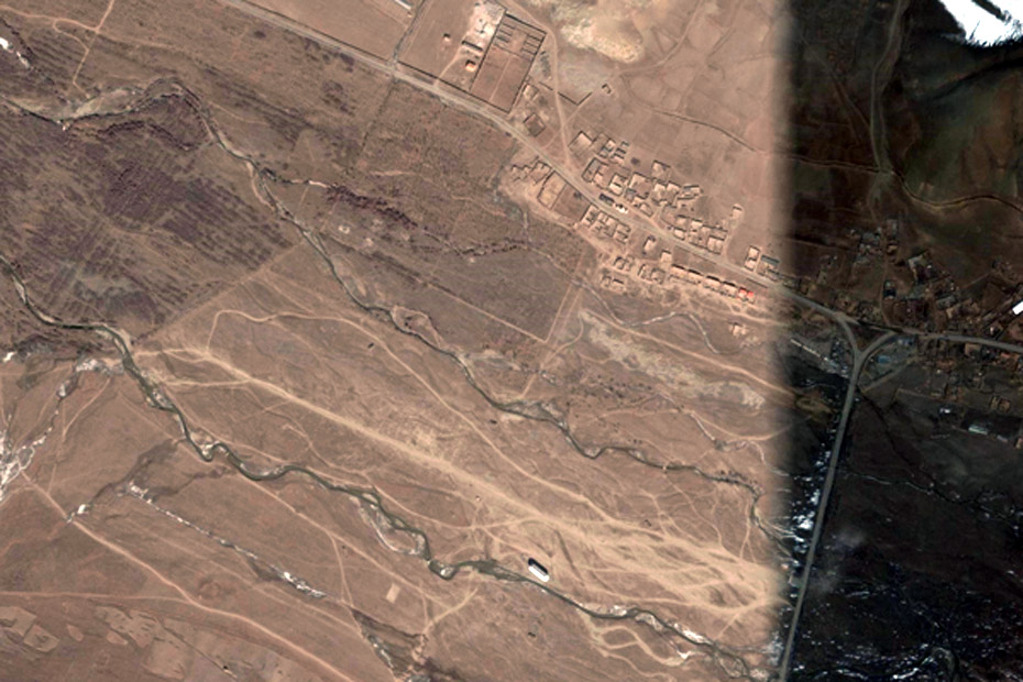 利用對(duì)地觀測(cè)中心2010年4月16日獲取的高分辨率航空遙感數(shù)據(jù),提取出玉樹州結(jié)古鎮(zhèn)城區(qū)范圍內(nèi)地震破壞最嚴(yán)重或典型地區(qū),使之與GoogleEarth中相應(yīng)位置的震前遙感衛(wèi)星數(shù)據(jù)進(jìn)行對(duì)比,直觀展現(xiàn)結(jié)古鎮(zhèn)在此次地震中的受影響程度。圖片來源:中國科學(xué)院