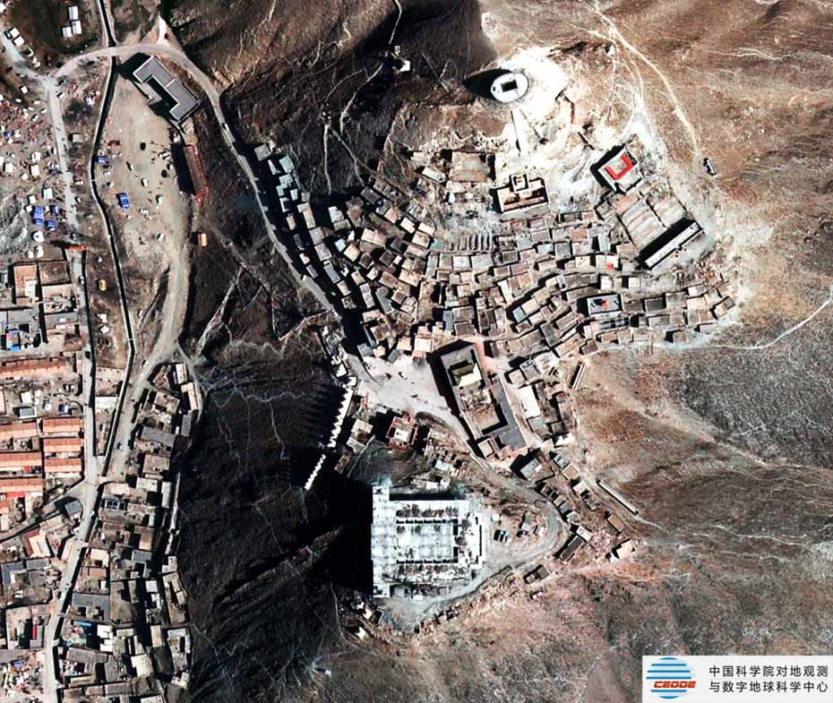 災后藏傳佛教寺廟-嘎結古寺〔由中國科學院對地觀測與數字地球科學中心拍攝〕