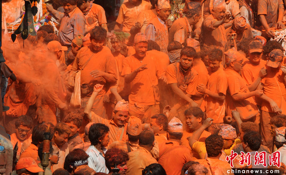 4月15日,尼泊爾迎來(lái)一年一度的傳統(tǒng)節(jié)日“尼歷新年”。當(dāng)日全國(guó)放假一天,在加德滿都郊區(qū)人們涌上街頭潑灑紅粉慶祝新年。圖片來(lái)源:中國(guó)新聞網(wǎng)
