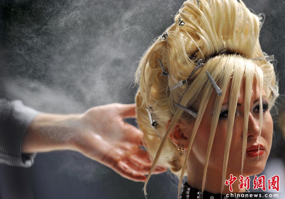 近日,第九屆“水晶天使”國(guó)際發(fā)型藝術(shù)節(jié)開(kāi)幕,設(shè)計(jì)師紛紛秀出自己設(shè)計(jì)的新款發(fā)型。圖片來(lái)源:中國(guó)新聞網(wǎng)
