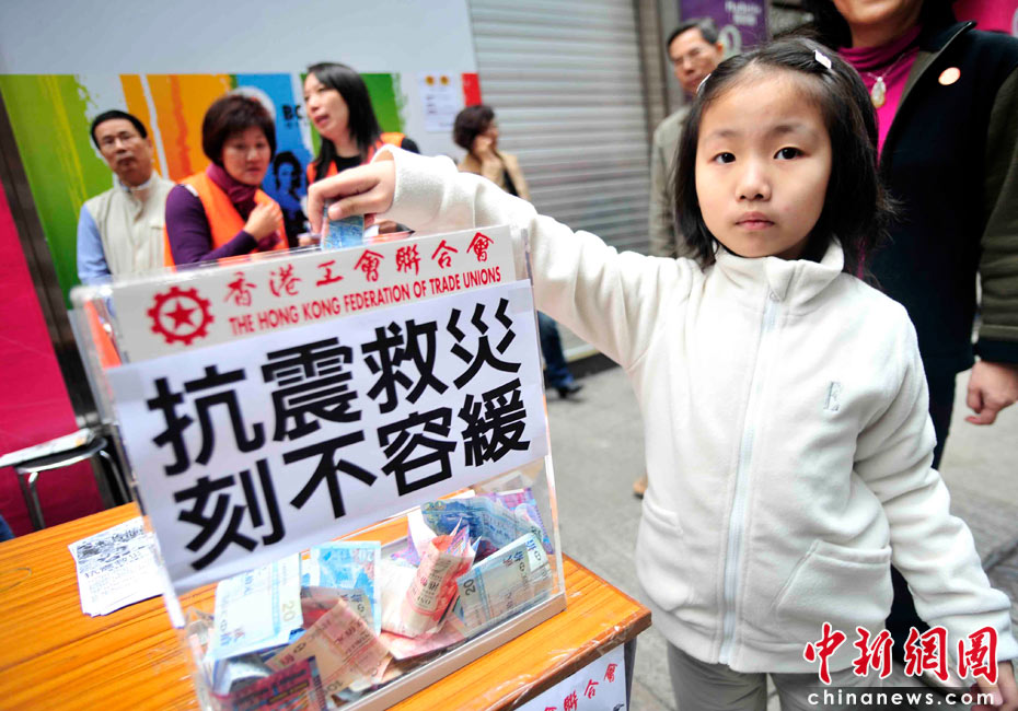 4月17日,香港市民在旺角街頭募捐。4月14日,青海省玉樹藏族自治州玉樹縣發(fā)生7.1級(jí)地震,給當(dāng)?shù)厝嗣袢罕娚?cái)產(chǎn)造成嚴(yán)重?fù)p失。災(zāi)情牽動(dòng)廣大香港同胞的心,連日來(lái),香港社會(huì)各界團(tuán)體及市民紛紛為地震災(zāi)區(qū)捐款。中新社發(fā) 譚達(dá)明 攝