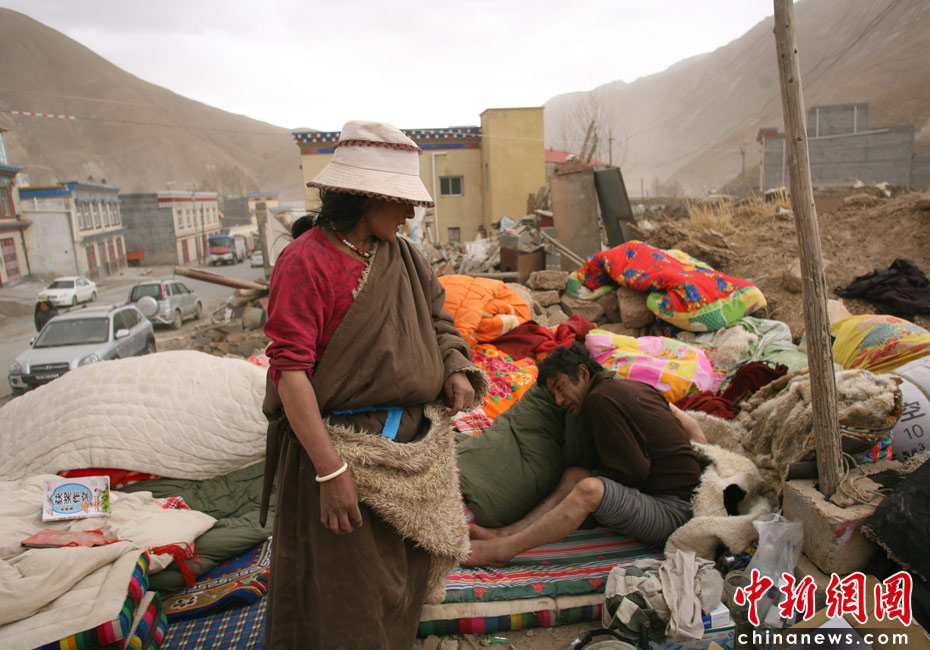 4月18日,玉樹部分居民還未搭起帳篷。中新社發(fā) 蘇丹 攝